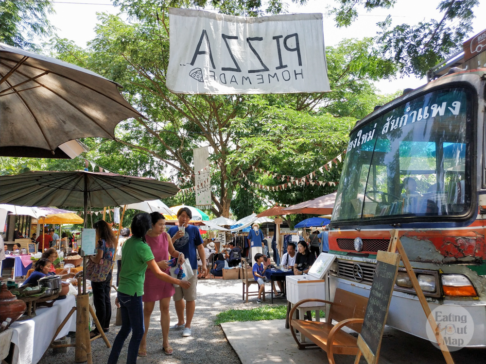 ถ้าหิวก็มีอาหารให้ซื้อทานมานั่งทาน มีตั้งแต่อาหารเหนือ อีสาน จนถึงเบอร์เกอร์ พิซซ่า หรือน้ำสมุนไพรต่างๆ ทั้งออแกนิก ปลอดภัยปลอดสาร