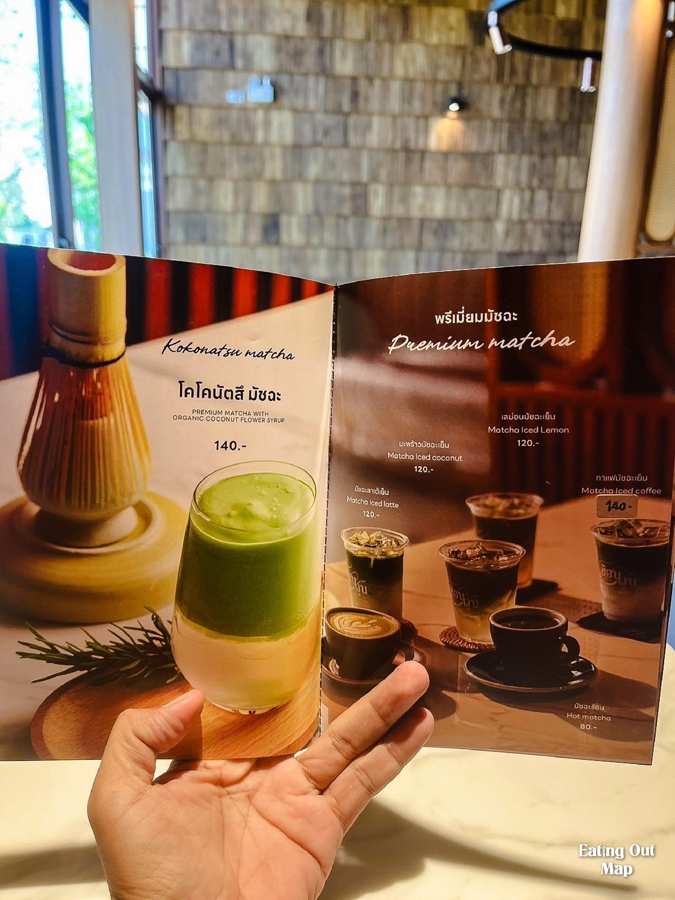 ถ้าเครื่องดื่มจะเป็นโคโคนัต มัชฉะ 140 บาท ส่วนอาหารเป็น จานเริ่มต้น 130 บาท