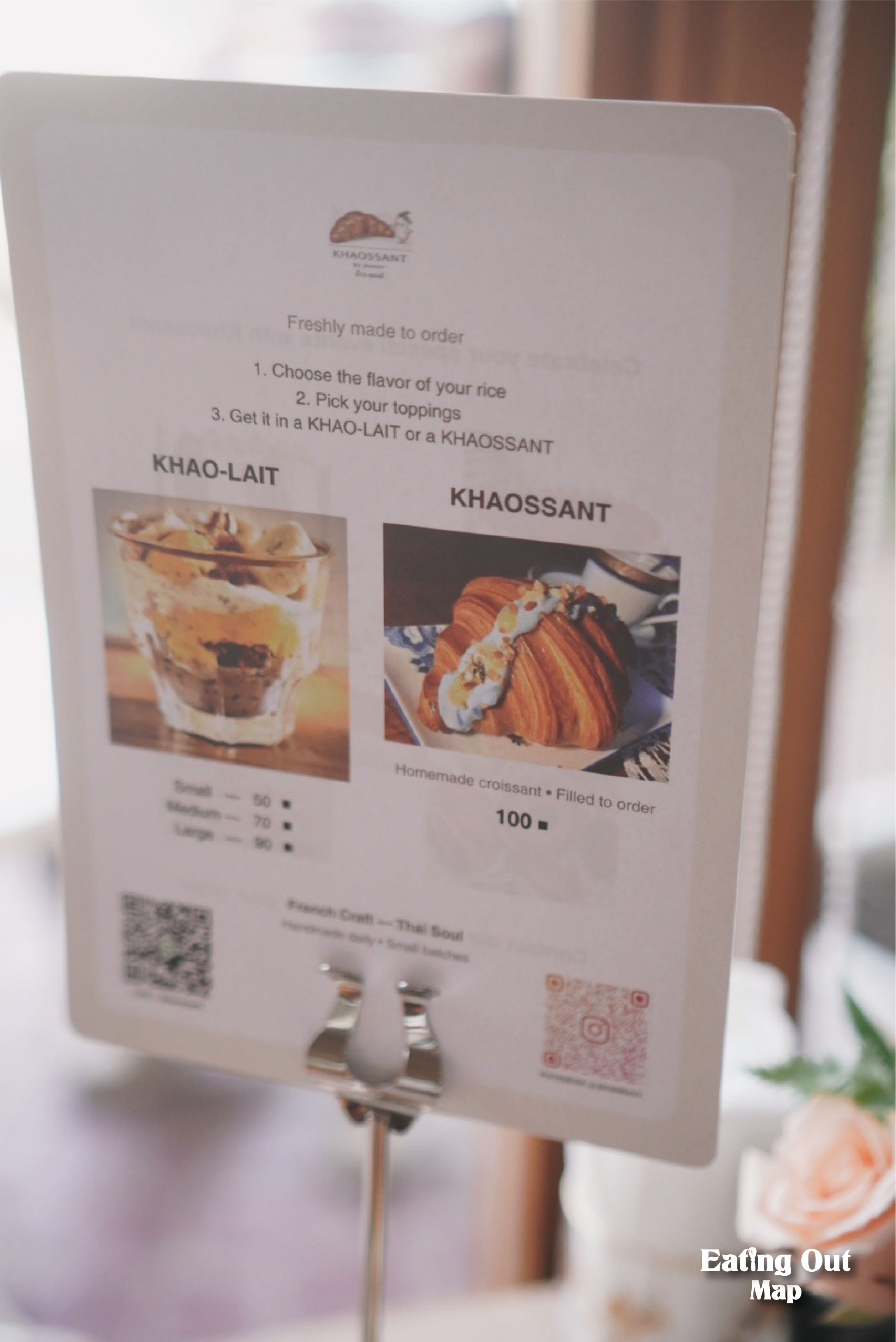 แต่เมนูที่ไม่ควรพลาดจริง ๆ คือ ครัวซองต์ออริจินอล ราคาเริ่มต้นประมาณ 80 บาท ใช้เนยนำเข้า รสชาติหอมเนย เลเยอร์แป้งกรอบนอกนุ่มใน รับรองว่าไม่เหมือนใคร