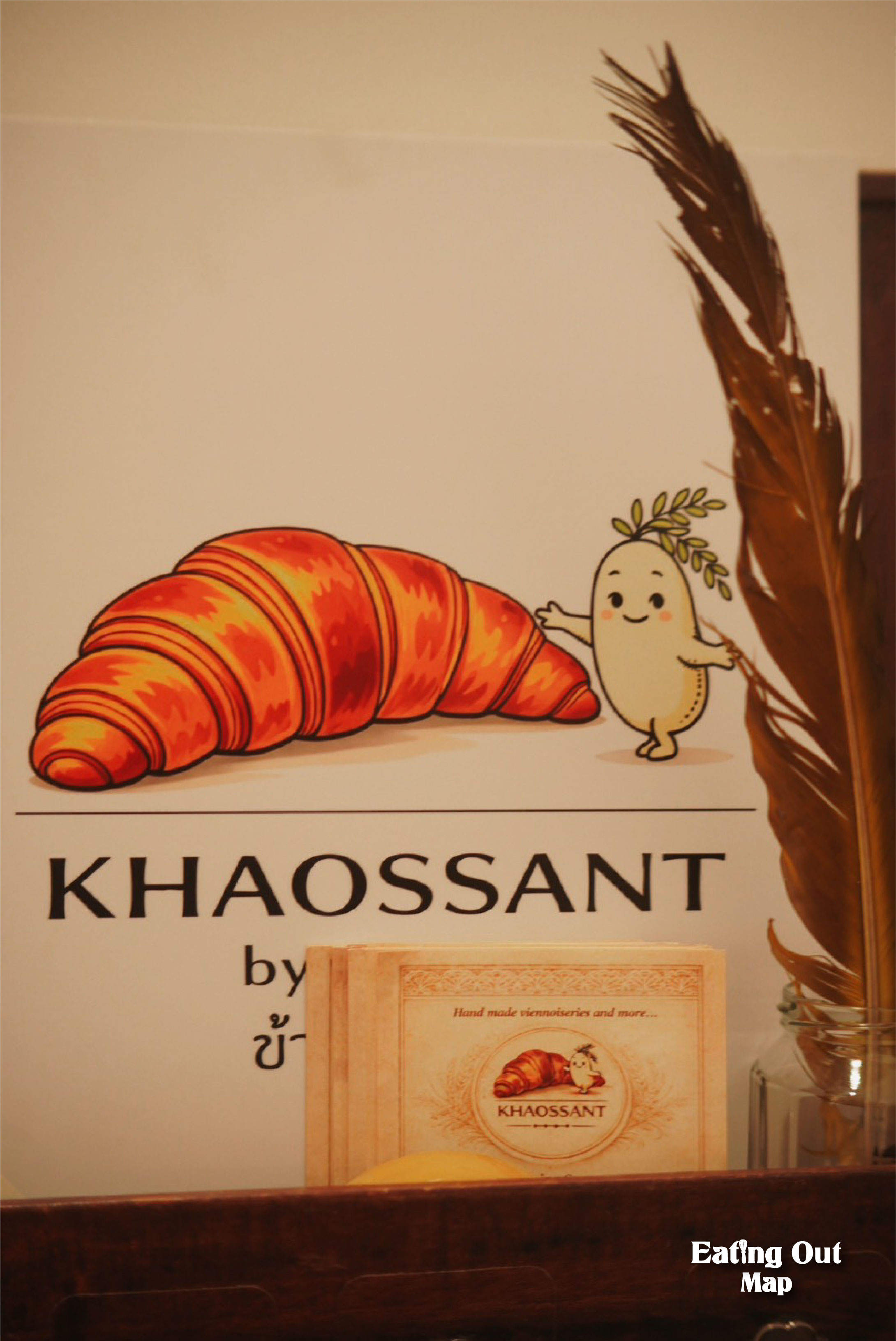 เมนูพิเศษที่เป็นที่มาของชื่อร้านคือ พุดดิ้งข้าวไทย ซึ่งทางร้านหยิบมาทำเป็นเมนูเด่น เลยกลายมาเป็นชื่อ “Khaossant (ข้าว-ซองต์)” ที่เล่นคำคล้ายกับ Croissant ต้นแบบของเมนูนี้คือ Riz au lait พุดดิ้งข้าวแบบฝรั่งเศส แต่ที่ร้านเลือกใช้ ข้าวไทยจากเชียงดาว แทน ซึ่งให้เนื้อสัมผัสและรสชาติใกล้เคียงสูตรฝรั่งเศสมาก