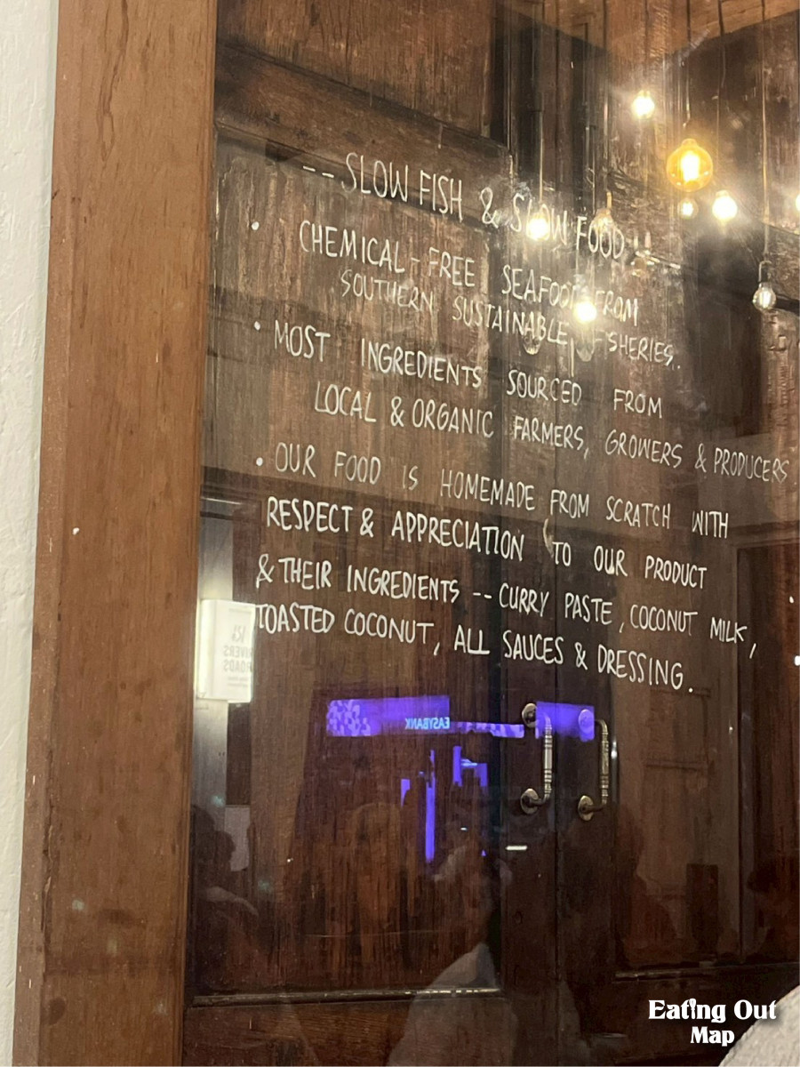 ร้านนี้ให้ความสำคัญกับ ชาวประมงท้องถิ่น และเลือกใช้ปลาจากเรือประมงยั่งยืน ส่งตรงจากทางใต้ ทำให้ได้ปลาหายากและสดมากแบบที่ไม่ค่อยเห็นในร้านทั่วไป