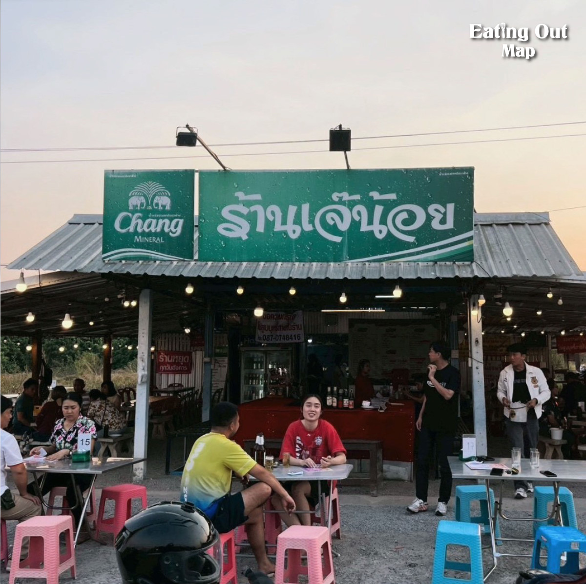 ปิ้งย่างเจ๊น้อย ร้านที่ไม่ได้เป็นแค่ร้านปิ้งย่าง แต่เป็น “ศูนย์รวมพลยามเย็น” ของคนทุกสายอาชีพ ตั้งแต่ชาวสวน พ่อค้า แม่ค้า ไปจนถึงคนทำงานเมือง ที่นัดกันมาเจอ มาเมาท์ มาชนแก้ว และวางเรื่องเครียดทิ้งไว้ข้างเตาถ่านทำเลติดถนน ทางผ่านพอดีแบบตั้งใจไม่ได้ แต่เหมือนถูกออกแบบมาให้ต้องแวะ บรรยากาศเปิดโล่ง ลมพัด กลิ่นควันเตาลอยเรียกน้ำย่อยตั้งแต่ยังไม่ลงจากรถทีเด็ดคือ “ฝีมือ” ล้วน ๆ ปิ้งย่างหอม ๆ น้ำจิ้มหลายแบบที่เด็ดจนต้องขอเพิ่ม มีทั้งหมูจุ่ม ไส้ย่างทีเด็ด ส้มตำ ต้มแซ่บ ของย่าง ของลวก ครบแบบที่ไปกันหลายคนแล้วสั่งแชร์ได้ทั้งโต๊ะ