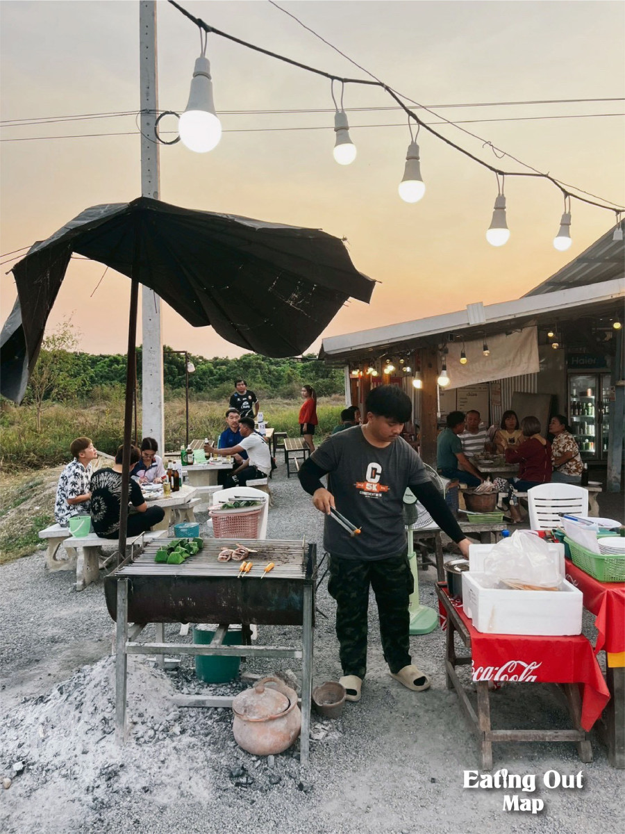 ถ้าคุณผ่านมาแถบนี้ช่วงเย็น แล้วเห็นร้านที่คนแน่น โต๊ะคึกคัก ควันลอยหอมฟุ้ง