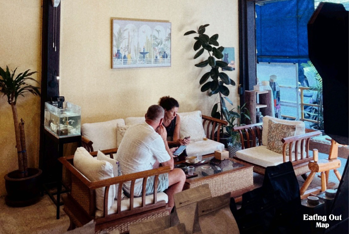 บรรยากาศร้านสบาย มีมุมพักผ่อนให้เลือกนั่งหลายแบบ เหมาะทั้งมานั่งทำงาน อ่านหนังสือ หรือแวะชิล ๆ ชิมกาแฟแบบเพลิน ๆ