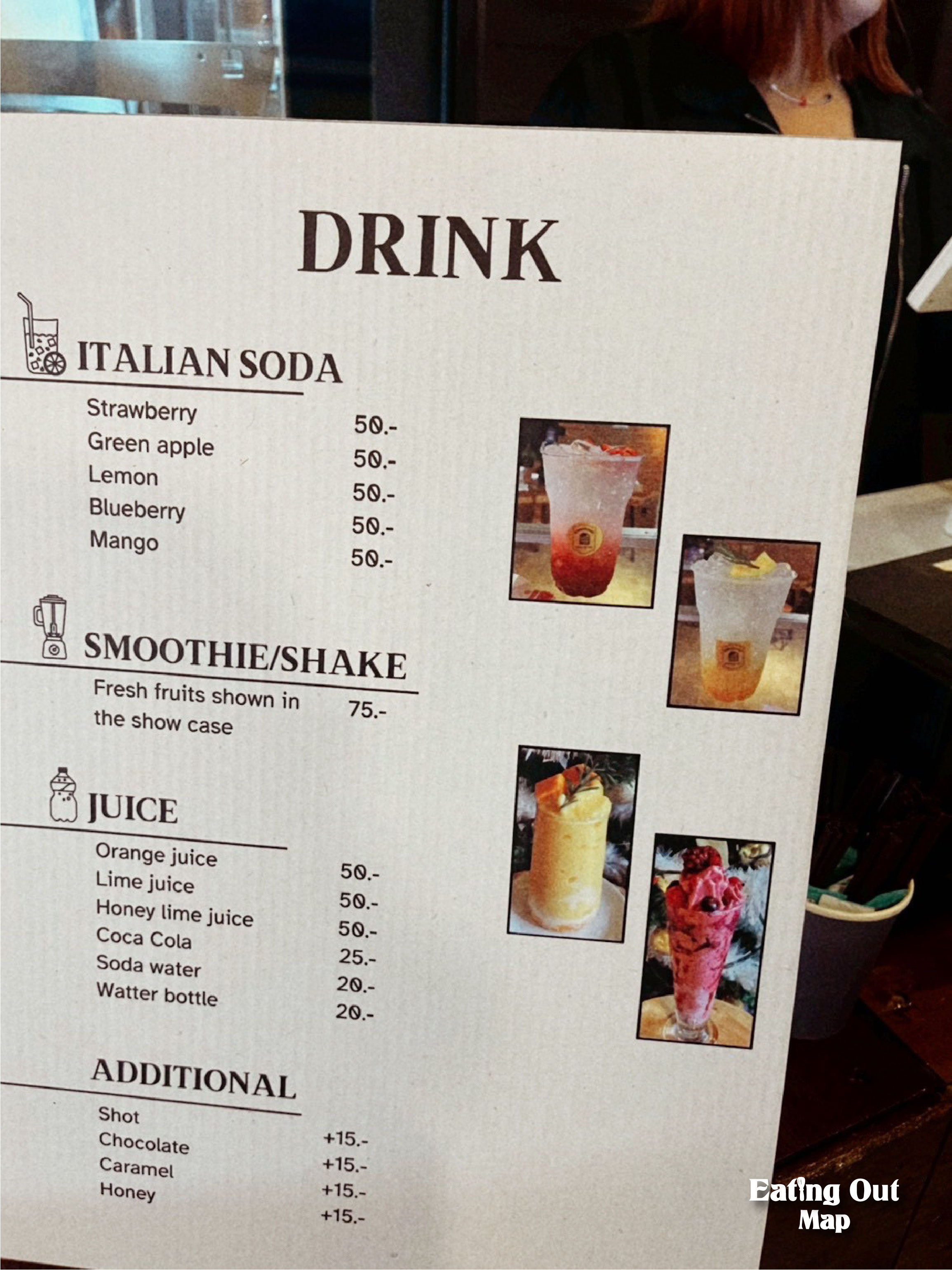สำหรับคนไม่ดื่มกาแฟ ที่นี่ก็มี น้ำผลไม้ปั่น ให้สั่งปรับความหวานได้ตามใจ เราได้ลอง มิกซ์เบอร์รี่โยเกิร์ต แบบหวานน้อย ใส่น้ำผึ้ง รสชาติสดชื่น หอมผลไม้ และราคาไม่แพงเลย