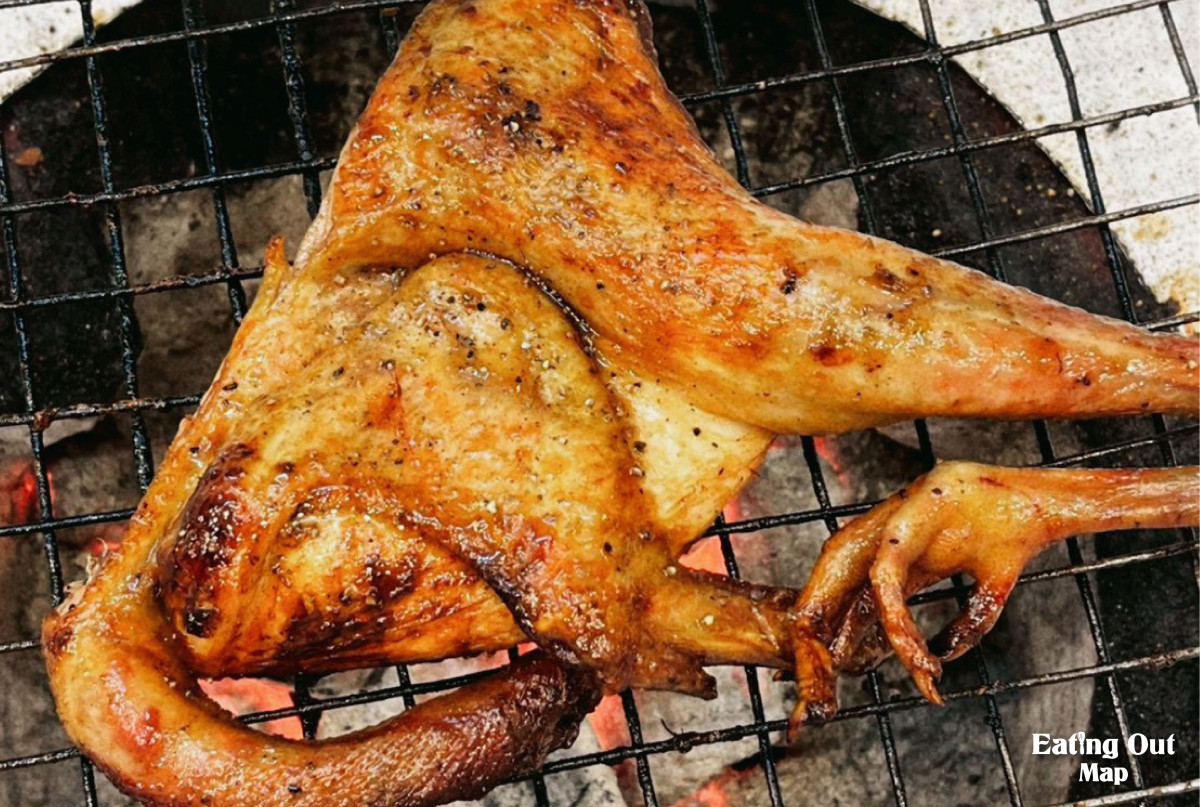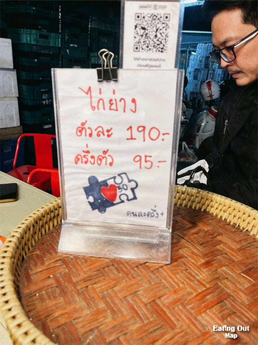ไก่บ้านแท้ ๆ ย่างจนหนังตึง หอมควัน สับชิ้นโต ๆ เนื้อแน่น ฉ่ำทุกคำ