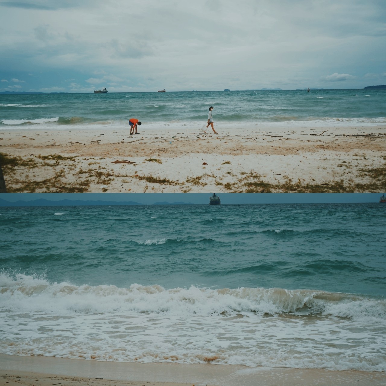 เมื่อเราเดินจนมาถึงชายหาดด้วยสองเท้าแต่ใจของเรานั้นวิ่งมาถึงก่อนตัวเสียอีก แสงแดดได้ทักทายกับชายหาดสะท้อนเข้ามาในตาเป็นระยะระหว่างเดินเท้าราวกับกระจกสะท้อนแสงโบกมือทักทาย คล้ายกับว่ารุูว่าเราผิดหวังจากเมื่อวานมาก่อน
