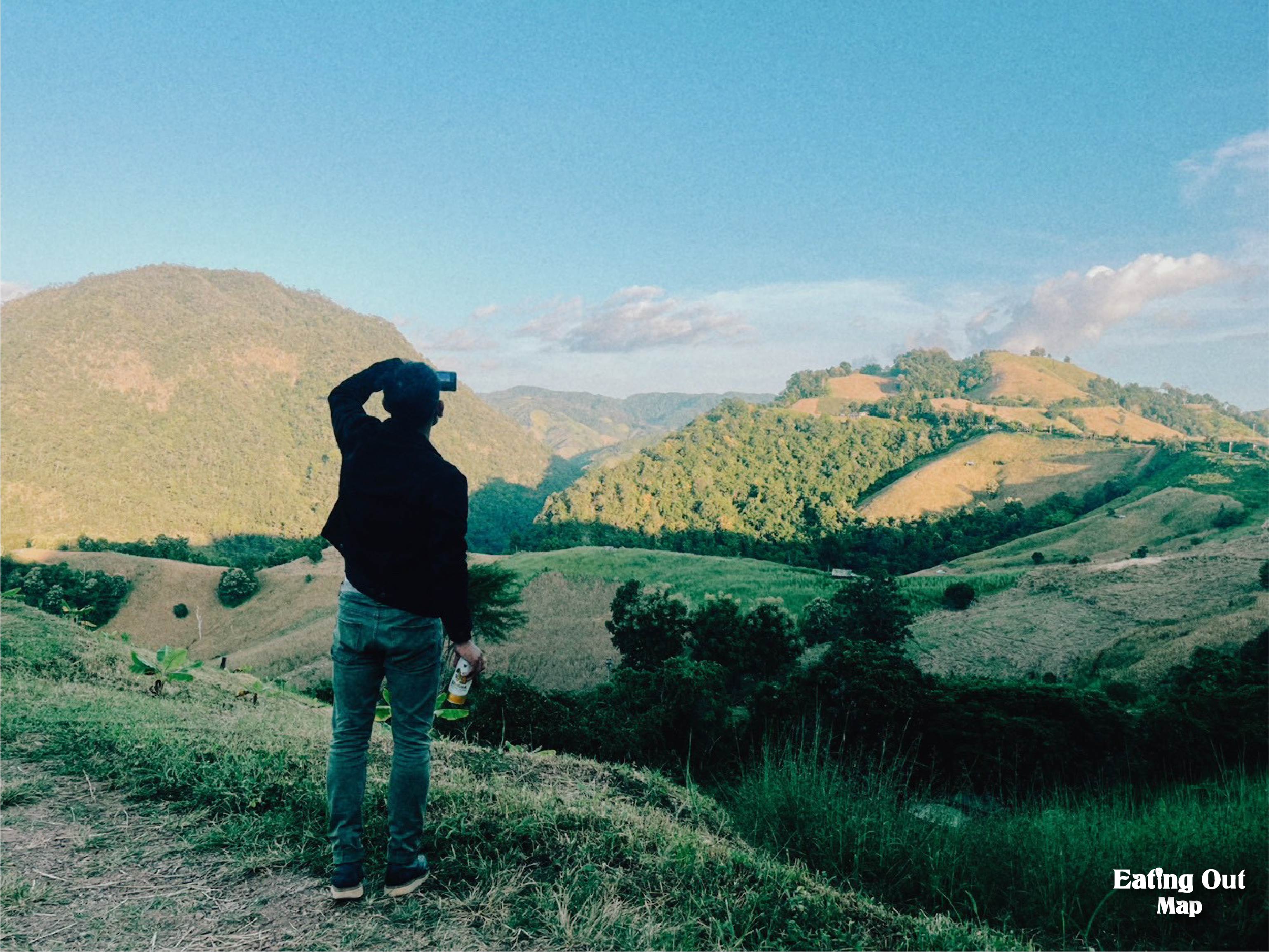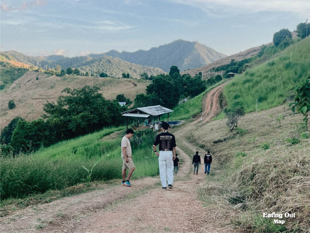• เดินชมพระอาทิตย์ตก — เดินเล่นชมวิวท้องนา แสงสุดท้ายของวันทาบลงบนยอดเขา