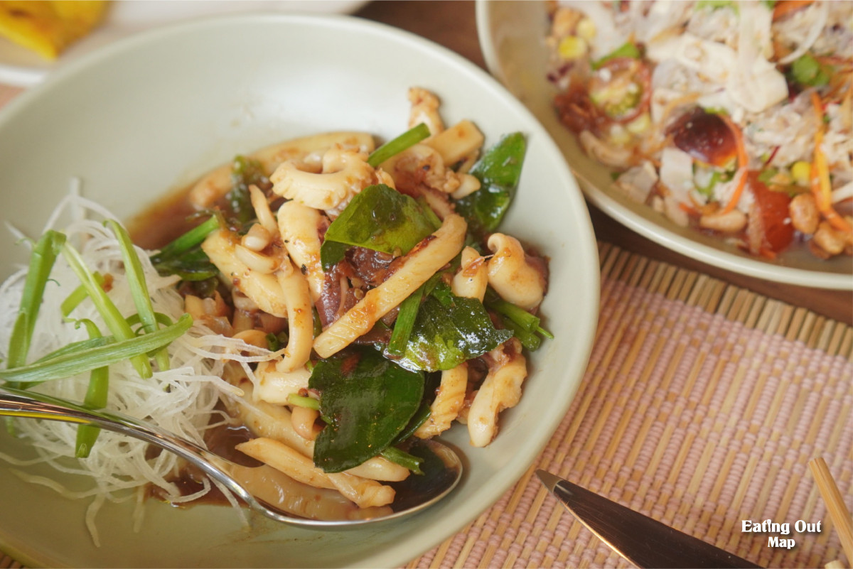 เมนูแต่ละจานมีเรื่องราวของตัวเอง ตั้งแต่ แกงส้มที่ต้องเสิร์ฟคู่ไข่เจียว, ปลาหมึกที่ปรุงรสด้วย มิโซะจากญี่ปุ่น ที่ทีมร้านหอบกลับมาด้วยตัวเอง ไปจนถึงวัตถุดิบอย่าง มะเขือเทศ ชีส และเครื่องปรุงต่าง ๆ ที่ทำแบบโฮมเมดเกือบทั้งหมด