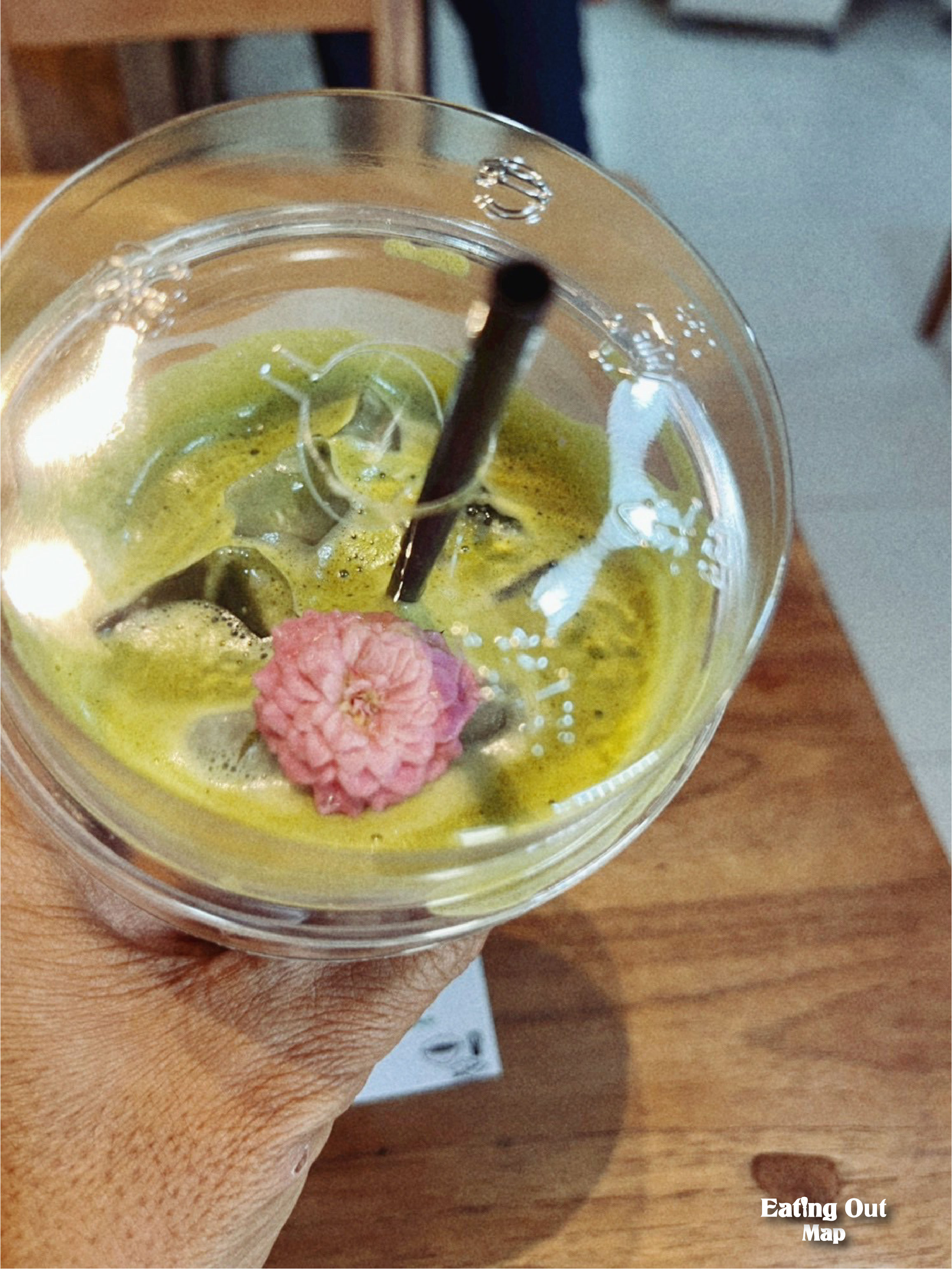 เราได้ลองเมนูมัจฉะที่มีหลายระดับให้เลือก และเลือกเป็นสูตร รสออกถั่ว ผสมมะพร้าว ที่ใช้ความหวานจาก ดอกมะพร้าวธรรมชาติ แทนน้ำตาลทั่วไป ผลคือได้รสชาติเข้มข้นแต่ละมุนมาก หอมถั่วนิดๆ ผสานกลิ่นหวานกลมๆ ของมะพร้าว ดีงามสุดๆ