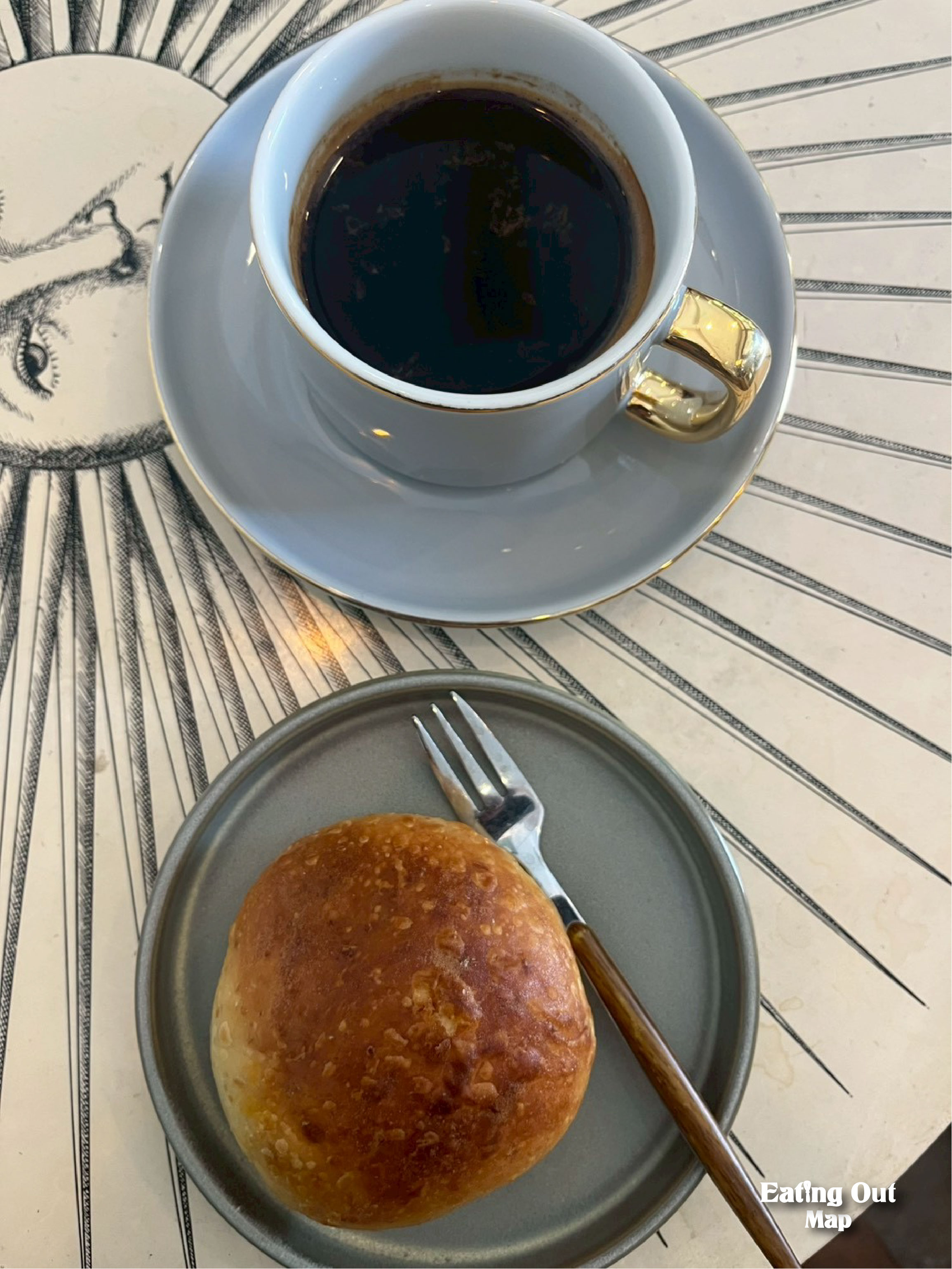 เมนูเรียบง่าย แต่จริงใจ วันนี้เราสั่ง อเมริกาโนร้อน Curry bun จากขนมปังซาวโดว์ รวม 100 บาทพอดีเป๊ะ