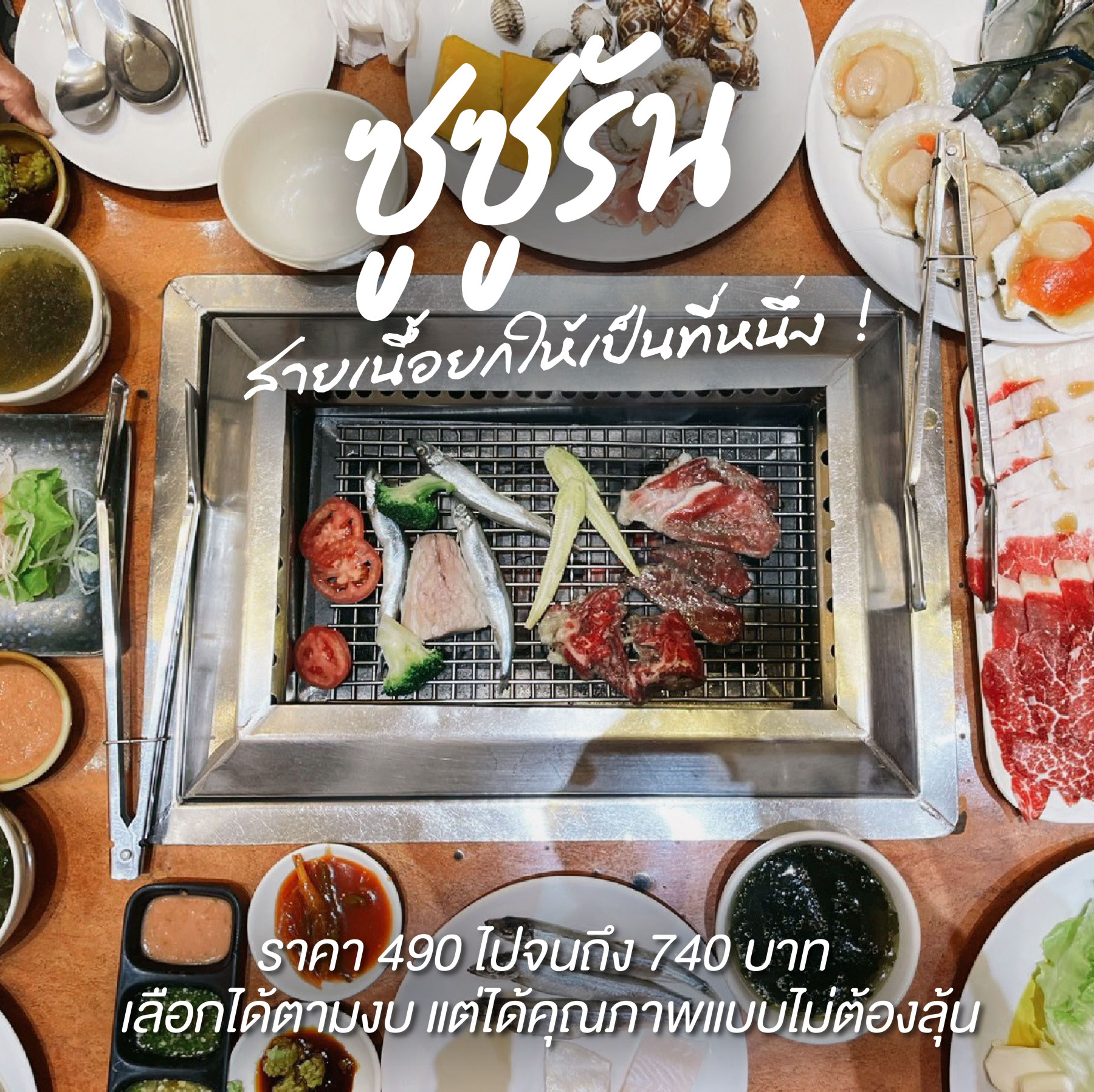 เริ่มต้นหลักร้อยตั้งแต่ 490 ไปจนถึง 740 บาท ความต่างไม่ได้อยู่ที่ “แพงกว่า” แต่อยู่ที่ระดับการคัดเนื้อไทย ที่ทำให้ลายแทรกของมันต่างกันอย่างชัดเจน เลือกได้ตามงบ แต่ได้คุณภาพแบบไม่ต้องลุ้น