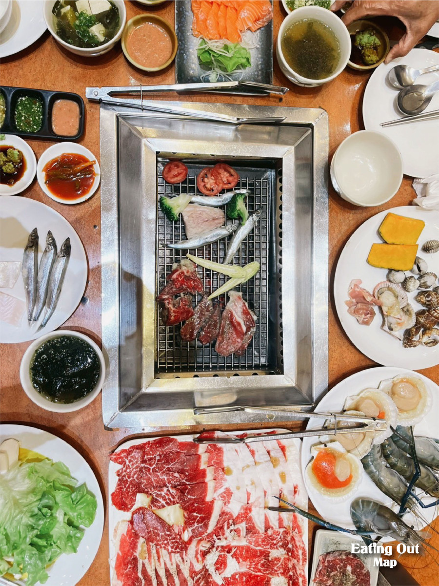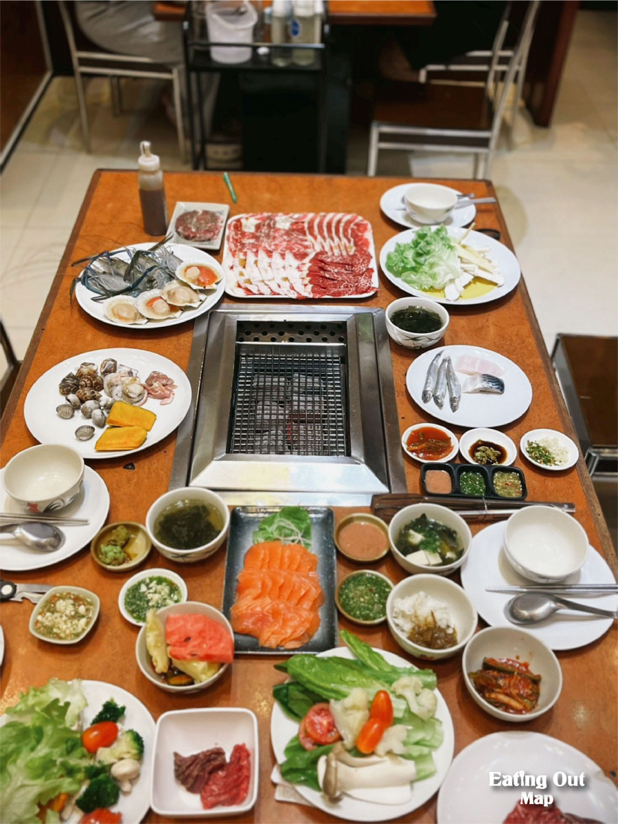 ที่นี่ยังจัดเต็มทั้งกุ้งตัวโต หอยตัวใหญ่ มาแบบจุก ๆ พร้อมน้ำจิ้มและกิมจิ เรียกได้ว่าโต๊ะหนึ่งโต๊ะ อิ่มทั้งใจ อิ่มทั้งท้อง และที่สำคัญ…อร่อยทุกอย่าง