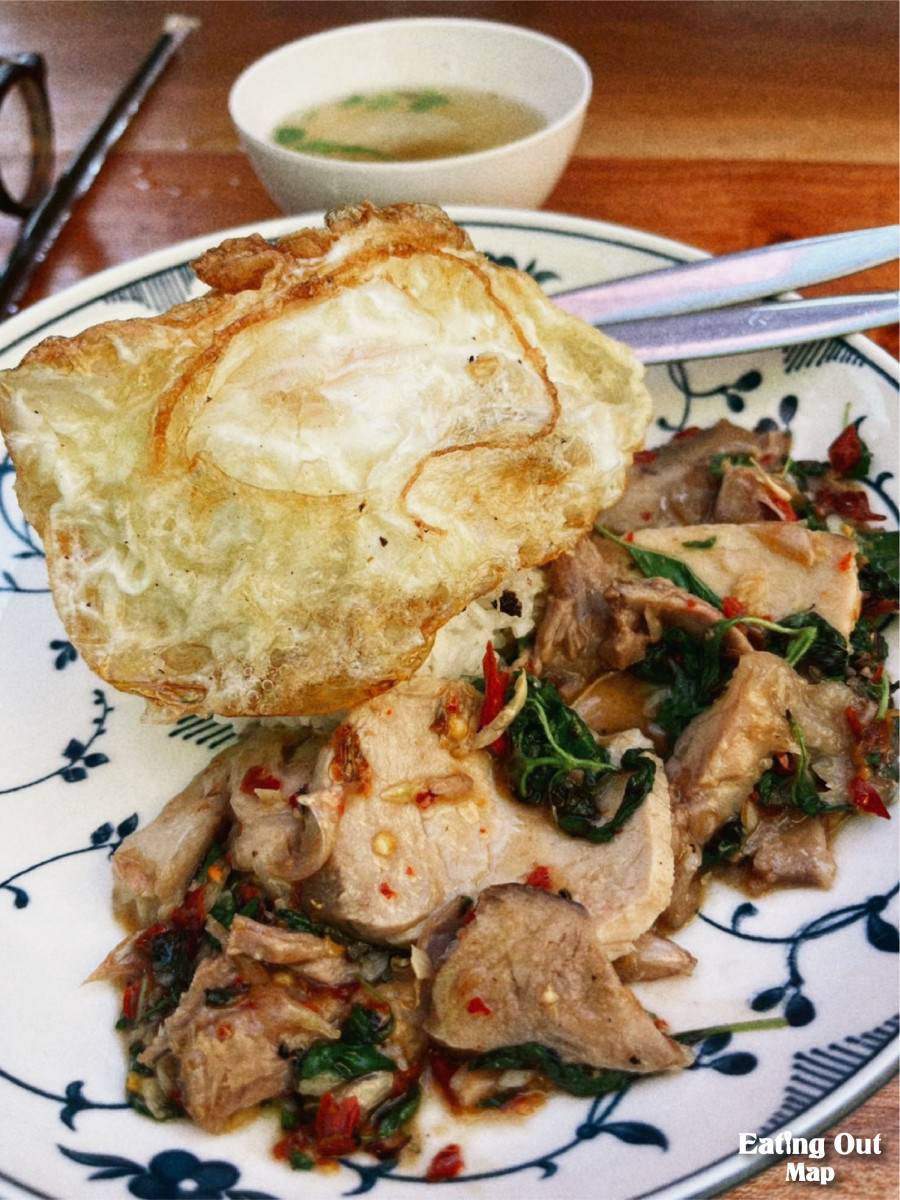 กะเพราหมูตุ๋น ซี่โครง หรือเนื้อตุ๋น เนื้อเปื่อยนุ่มแบบไม่ต้องออกแรงเคี้ยว คลุกกับพริกกระเทียมและใบกะเพราหอมฉุน จานนี้คือการจับของตุ๋นที่จริงจังมาเจอกะเพราที่จัดจ้าน ได้รสลึกและหนักแน่นในคำเดียว ????️????