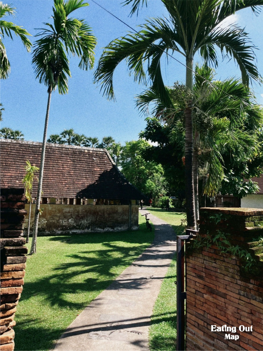 บรรยากาศรอบร้านยิ่งเพิ่มเสน่ห์ วัดต้นเกว๋นสวยจนคนมาถ่ายรูปกันแน่น คิวถ่ายยาวพอๆ กับคิวอาหาร แสงเช้า แสงเย็น สวยทุกมุม กินไปมองวัดไป ฟีลสงบแต่ไม่เงียบ